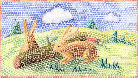 ...les gouaches, c'est une vieille histoire qui remonte aux années scolaires ... un petit clin d'oeil avec cette mosaïque